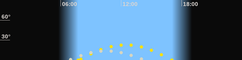 | Höchster Sonnenstand (Kulmination) | 12:23 Uhr (h = 22.9°) |