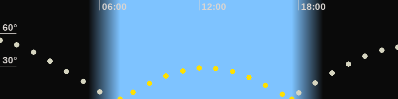 | Höchster Sonnenstand (Kulmination) | 12:23 Uhr (h = 28.5°) |