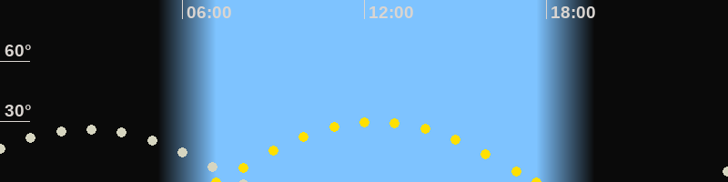 | Höchster Sonnenstand (Kulmination) | 12:23 Uhr (h = 30°) |