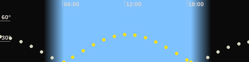 Höchster Sonnenstand (Kulmination)12:17 Uhr (h = 40.1°)