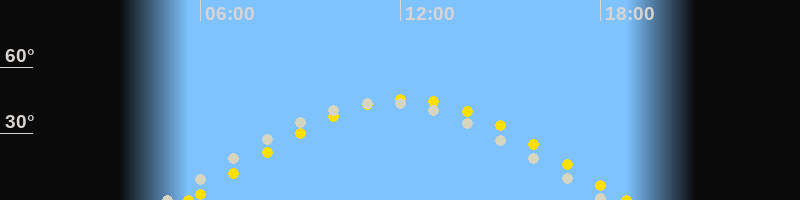 | Sonnenaufgang | 05:38 Uhr im Osten (αAz = 79.6°) |