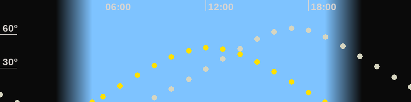 | Höchster Stand (Kulmination) | 17:06 Uhr (h=65.2°) |
