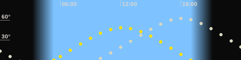 | Höchster Stand (Kulmination) | 18:03 Uhr (h=62.9°) |