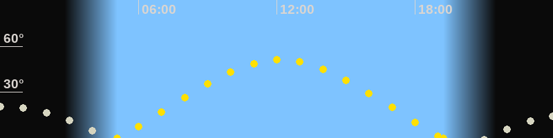 | Sonnenaufgang | 05:05 Uhr im Osten (αAz = 70.2°) |
