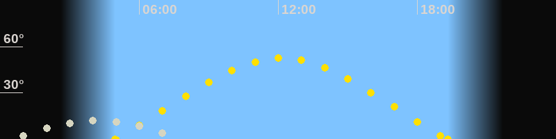 | Sonnenaufgang | 04:57 Uhr im Osten (αAz = 68.1°) |