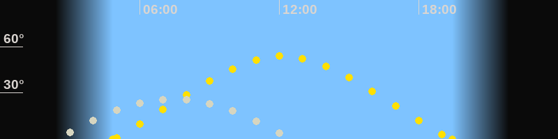 | Höchster Sonnenstand (Kulmination) | 12:07 Uhr (h = 53.9°) |