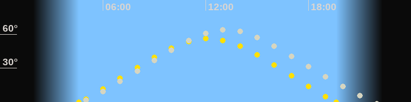 | Höchster Sonnenstand (Kulmination) | 12:06 Uhr (h = 56.2°) |