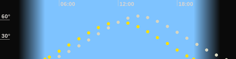 | Höchster Sonnenstand (Kulmination) | 12:06 Uhr (h = 56.5°) |