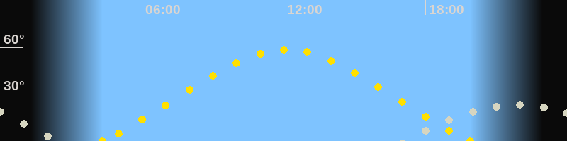 | Höchster Sonnenstand (Kulmination) | 12:06 Uhr (h = 58.7°) |