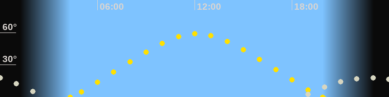 | Höchster Sonnenstand (Kulmination) | 12:06 Uhr (h = 58.9°) |