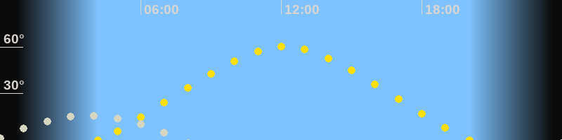 | Höchster Sonnenstand (Kulmination) | 12:07 Uhr (h = 60.1°) |