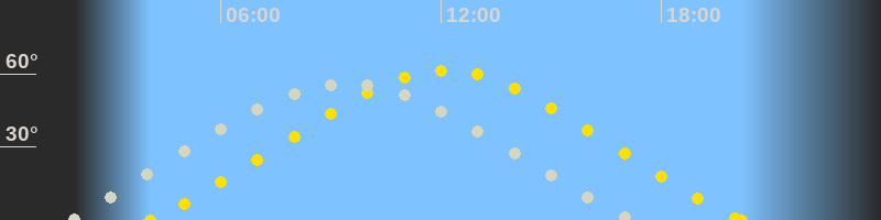 | Höchster Sonnenstand (Kulmination) | 12:08 Uhr (h = 61.4°) |