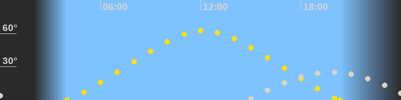 | Höchster Sonnenstand (Kulmination) | 12:10 Uhr (h = 62.5°) |