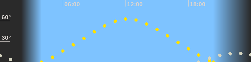 | Höchster Sonnenstand (Kulmination) | 12:11 Uhr (h = 62.6°) |