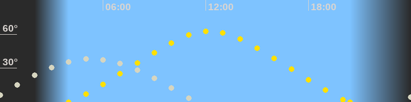 | Sonnenaufgang | 04:00 Uhr im Nordosten (αAz = 50.3°) |