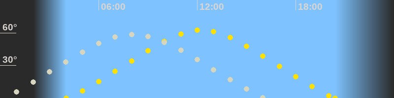 | Höchster Stand (Kulmination) | 08:01 Uhr (h=58.4°) |