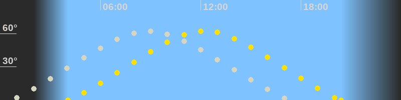 | Höchster Sonnenstand (Kulmination) | 12:14 Uhr (h = 62.4°) |