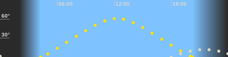 | Höchster Sonnenstand (Kulmination) | 12:16 Uhr (h = 60.9°) |