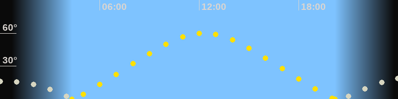 | Höchster Sonnenstand (Kulmination) | 12:16 Uhr (h = 60.2°) |