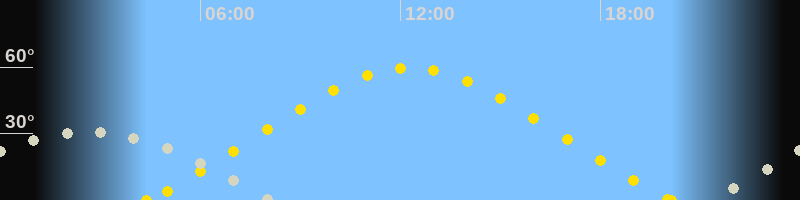 | Höchster Sonnenstand (Kulmination) | 12:16 Uhr (h = 59.6°) |