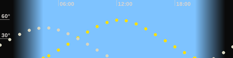 | Höchster Sonnenstand (Kulmination) | 12:16 Uhr (h = 59°) |