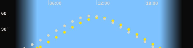 | Höchster Sonnenstand (Kulmination) | 12:16 Uhr (h = 57.2°) |