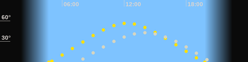 | Höchster Sonnenstand (Kulmination) | 12:16 Uhr (h = 56.4°) |