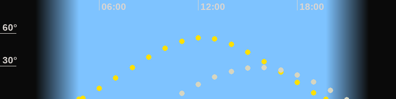 | Sonnenaufgang | 04:46 Uhr im Nordosten (αAz = 62.3°) |