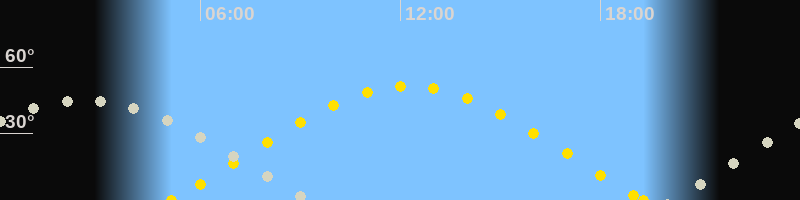 | Sonnenaufgang | 05:07 Uhr im Osten (αAz = 69.4°) |