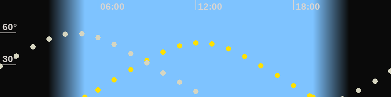 | Sonnenaufgang | 05:11 Uhr im Osten (αAz = 71.1°) |