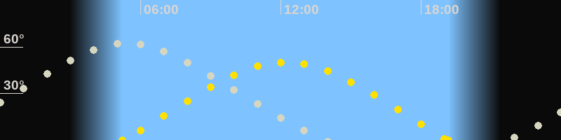 | Höchster Sonnenstand (Kulmination) | 12:12 Uhr (h = 50.2°) |