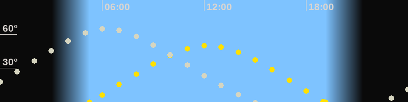 | Höchster Stand (Kulmination) | 06:14 Uhr (h=64.7°) |