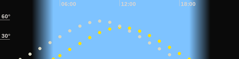 | Höchster Sonnenstand (Kulmination) | 12:11 Uhr (h = 48.5°) |