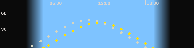 | Höchster Sonnenstand (Kulmination) | 12:10 Uhr (h = 48.1°) |