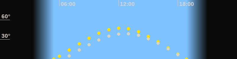 | Sonnenaufgang | 05:25 Uhr im Osten (αAz = 76.2°) |
