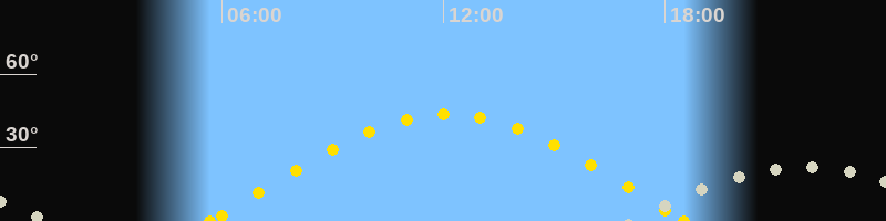 | Höchster Sonnenstand (Kulmination) | 12:06 Uhr (h = 43.6°) |