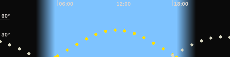 | Sonnenaufgang | 05:44 Uhr im Osten (αAz = 83.4°) |