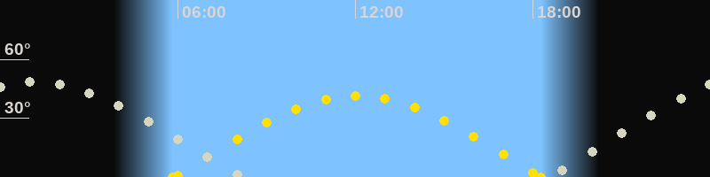 | Höchster Sonnenstand (Kulmination) | 12:04 Uhr (h = 41.3°) |