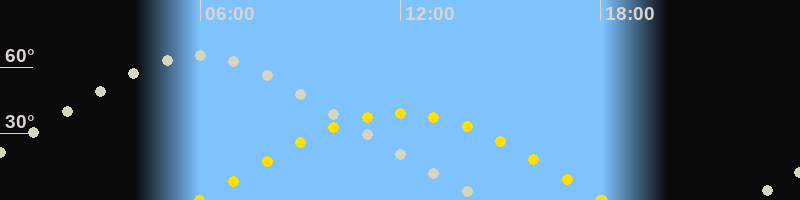 | Höchster Stand (Kulmination) | 05:55 Uhr (h=65.2°) |