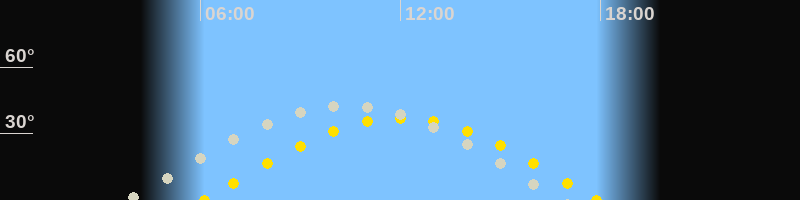 | Höchster Sonnenstand (Kulmination) | 12:00 Uhr (h = 37.1°) |