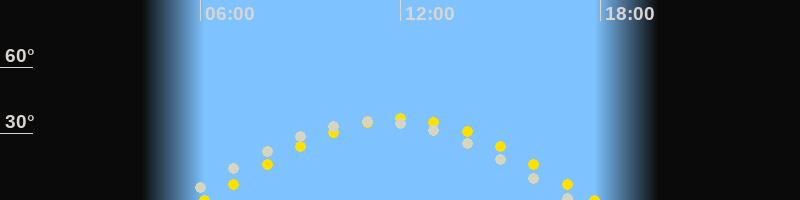 | Höchster Sonnenstand (Kulmination) | 12:00 Uhr (h = 36.7°) |