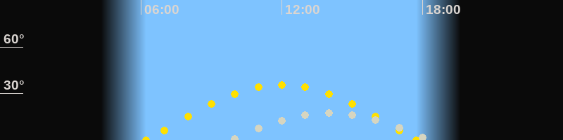 | Höchster Sonnenstand (Kulmination) | 11:59 Uhr (h = 35.5°) |