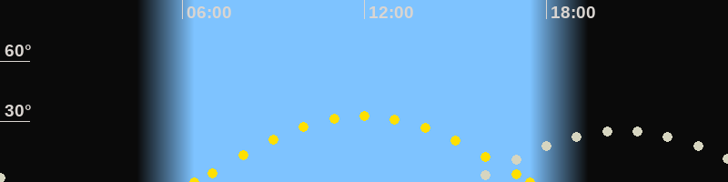 | Sonnenaufgang | 06:24 Uhr im Osten (αAz = 99.3°) |