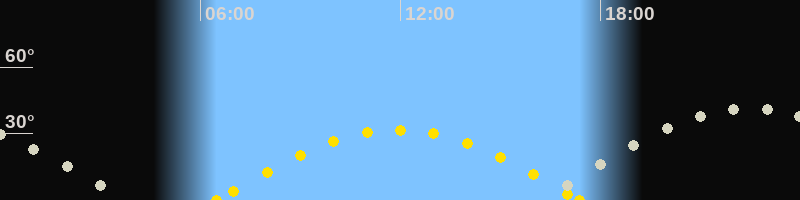 | Höchster Sonnenstand (Kulmination) | 11:56 Uhr (h = 31.7°) |