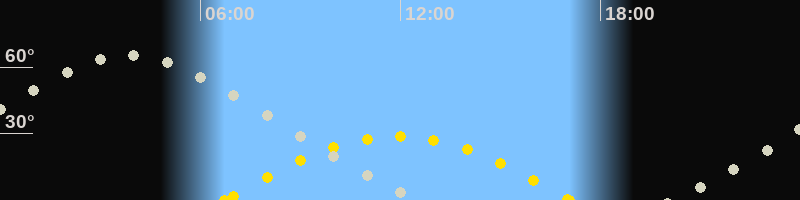 | Höchster Sonnenstand (Kulmination) | 11:55 Uhr (h = 28.8°) |