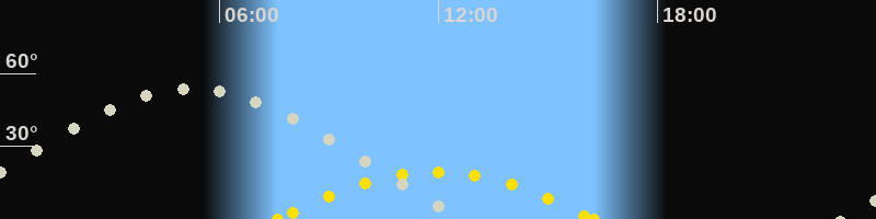 | Höchster Sonnenstand (Kulmination) | 11:55 Uhr (h = 19.5°) |