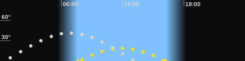| Höchster Sonnenstand (Kulmination) | 11:56 Uhr (h = 19.1°) |