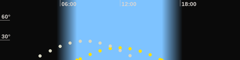 | Höchster Stand (Kulmination) | 08:35 Uhr (h=28.8°) |