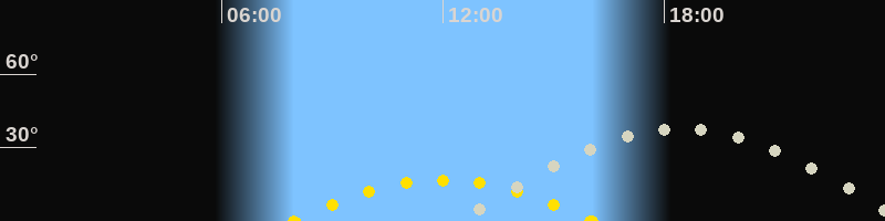 | Höchster Sonnenstand (Kulmination) | 12:00 Uhr (h = 16.9°) |