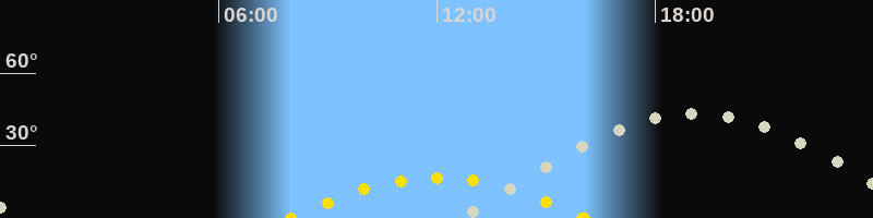 | Höchster Sonnenstand (Kulmination) | 12:01 Uhr (h = 16.7°) |